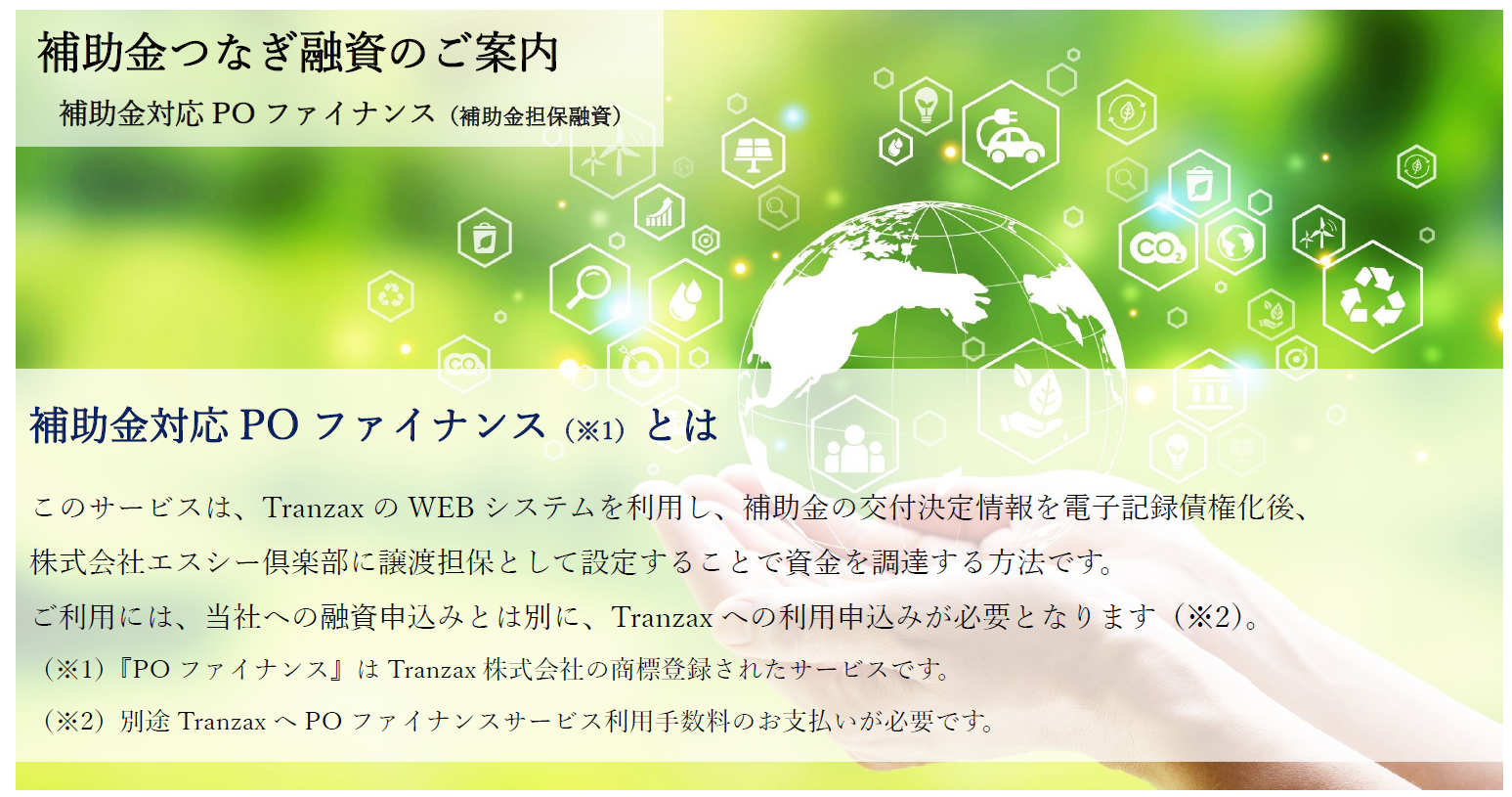 Tranzax(株)補助金対応POファイナンスのページはこちら